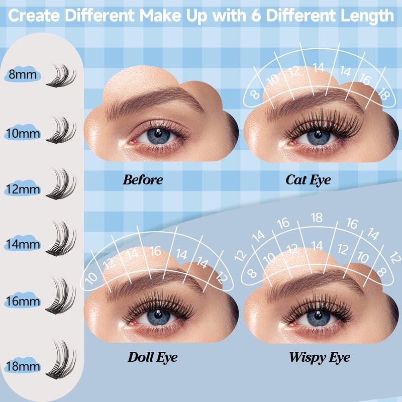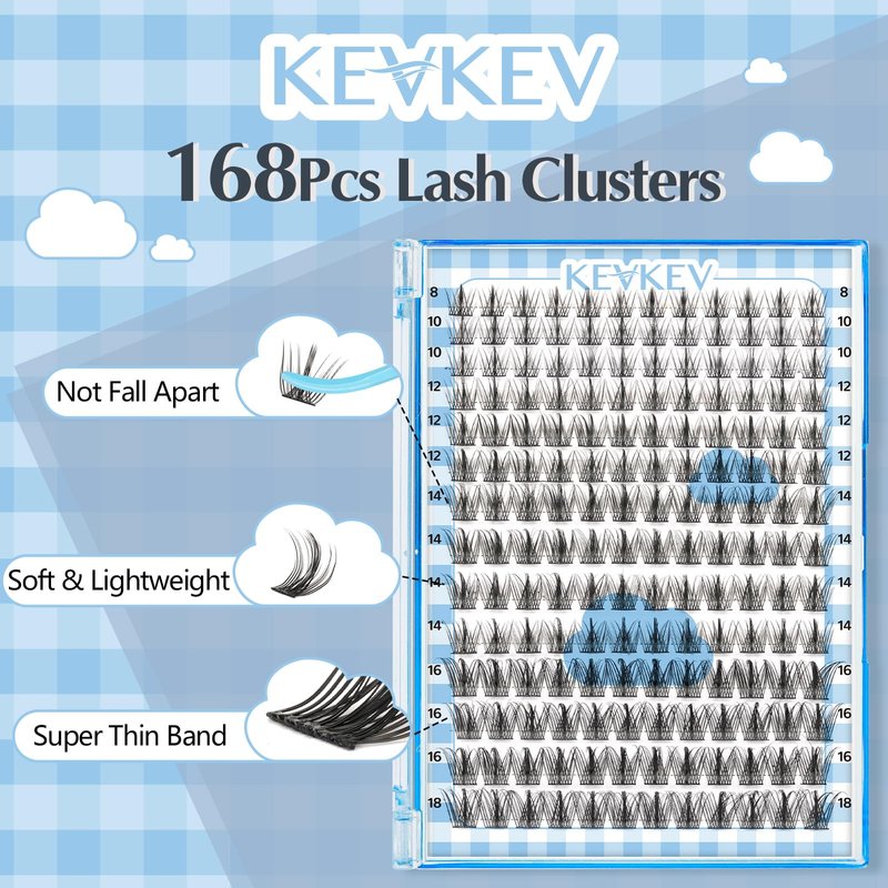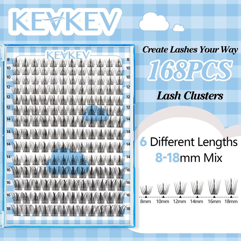 - Multiple Length Combinations: Elevate your lash make up with KEVKEV 168Pcs Lash Clusters. Experience the convenience of a large capacity DIY lash extension featuring 168Pcs cluster lashes in 6 different lengths (8-18mm).