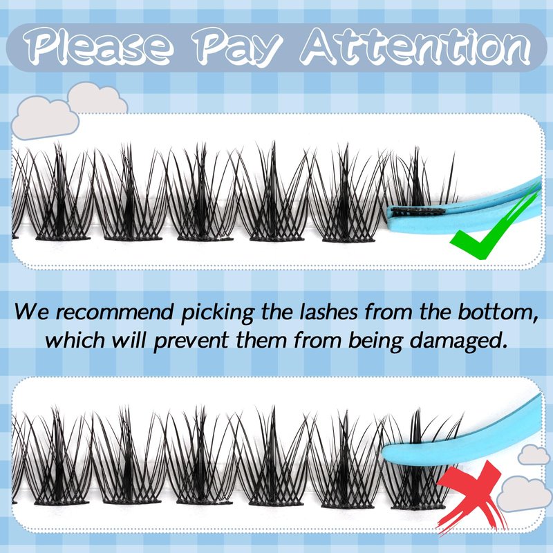 - Finely Crafted Eyelashes Extension: KEVKEV eyelash clusters looks real, like your own lashes without the plastic feel. Each piece of lashes cluster is carefully crafted to be lightweight and soft without irritating the skin of your eyes, and the lash band are ultra-thin while making sure the DIY lash extension will not fall apart.