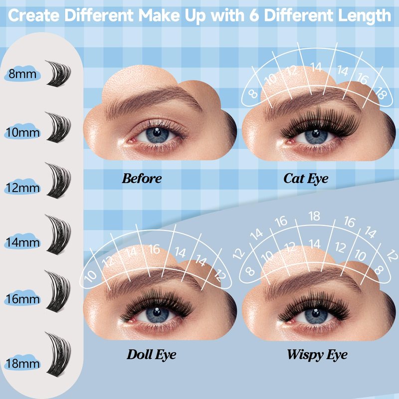 - Multiple Length Combinations: Elevate your lash make up with KEVKEV 168Pcs Lash Clusters. Experience the convenience of a large capacity DIY lash extension featuring 168Pcs cluster lashes in 6 different lengths (8-18mm).