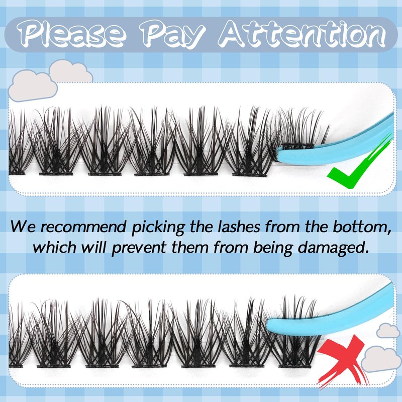 - Finely Crafted Eyelashes Extension: KEVKEV eyelash clusters looks real, like your own lashes without the plastic feel. Each piece of lashes cluster is carefully crafted to be lightweight and soft without irritating the skin of your eyes, and the lash band are ultra-thin while making sure the DIY lash extension will not fall apart.