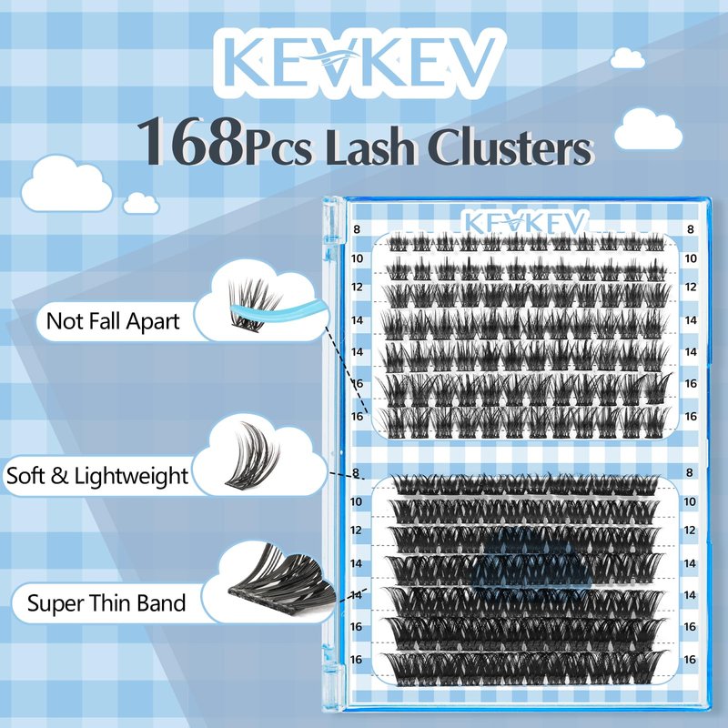 - Multiple Length Combinations: Elevate your lash make up with KEVKEV 168Pcs Lash Clusters. Experience the convenience of a large capacity DIY lash extension featuring 168Pcs cluster lashes in 6 different lengths (8-18mm).