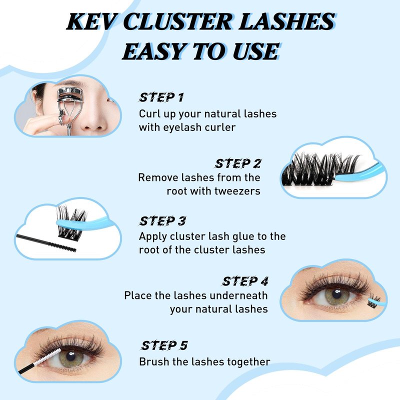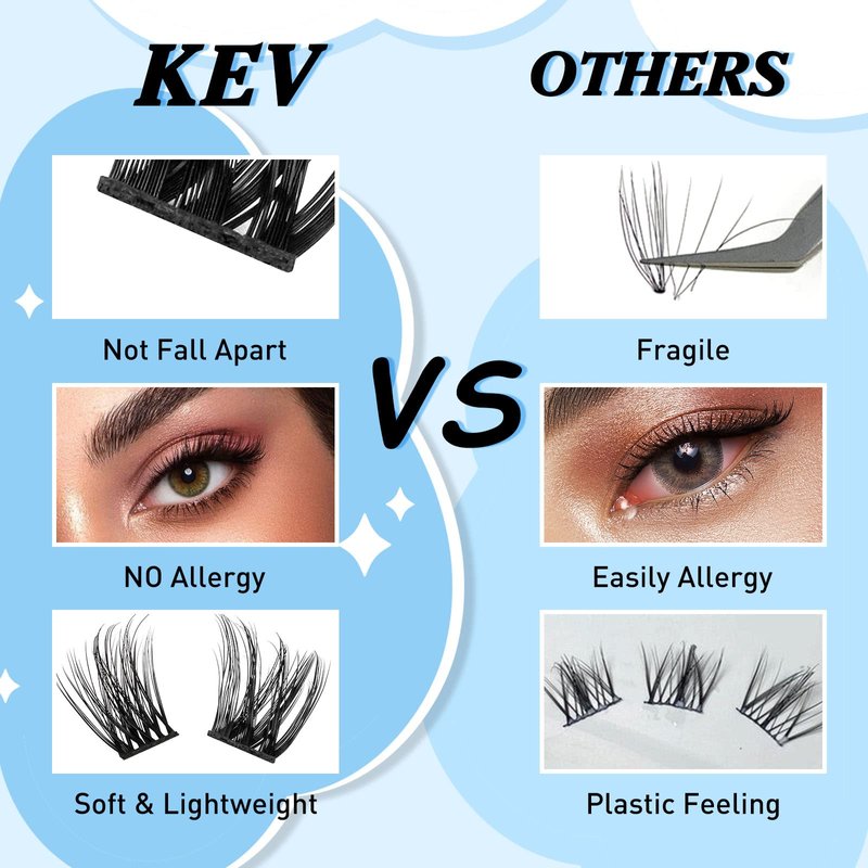 - Soft & Lightweight: KevKev super thin band lash clusters to ensure the lashes will not hurt your eyes. Also we have upgraded our eyelash materials. Our cluster lashes are soft and fluffy just like natural lashes. No worry about the plastic look.