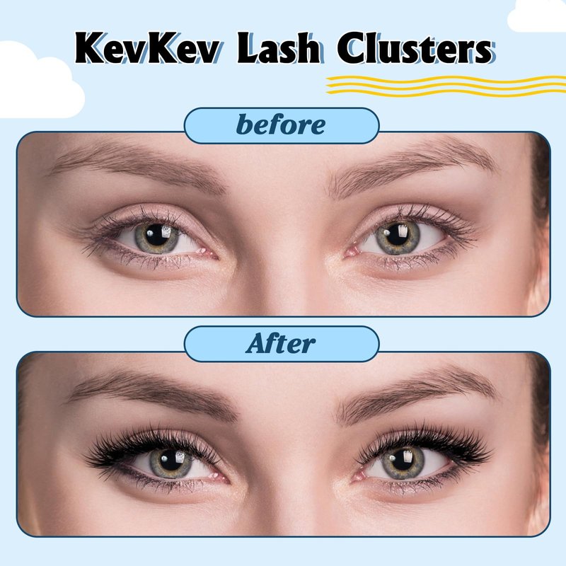 - Different lash styles & length to suit your mood: KevKev offers multiple lengths and curls for different lash look. 48 lash clusters, 10mm - 16mm in length. Try to find your own lash style at KevKev.
