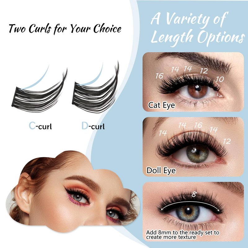 - Soft & Lightweight: Super thin band lash clusters to ensure the lashes will not hurt your eyes. Also we have upgraded our eyelash materials. Our cluster lashes are soft and fluffy just like natural lashes. No worry about the plastic look.
