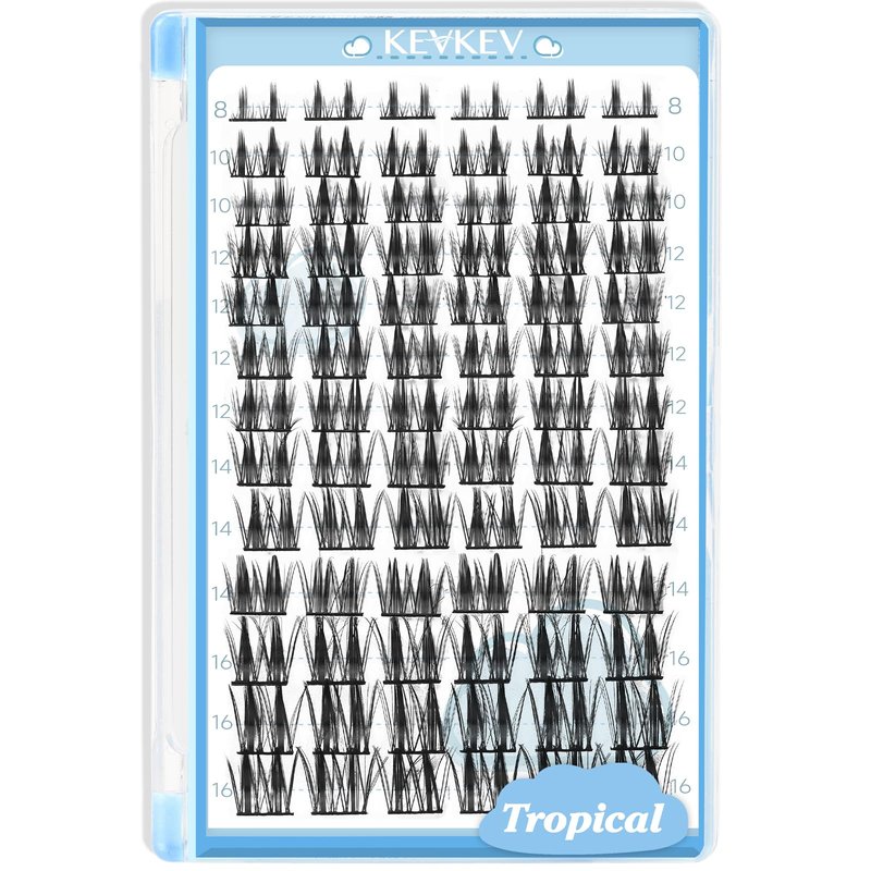 KevKev Lash Clusters 78 Pcs Cluster Lashes Eyelash Clusters DIY Cluster Eyelash Extensions Individual Lashes that Look Like Eyelash Extensions Natural Look Thin Band & Soft(Tropical,D-8-16mix)