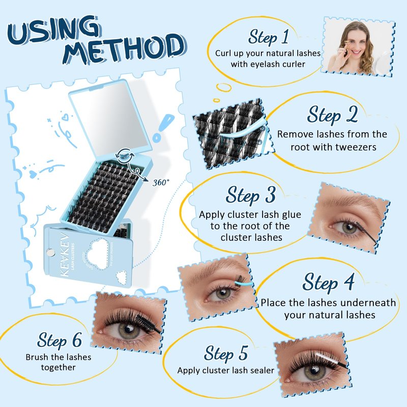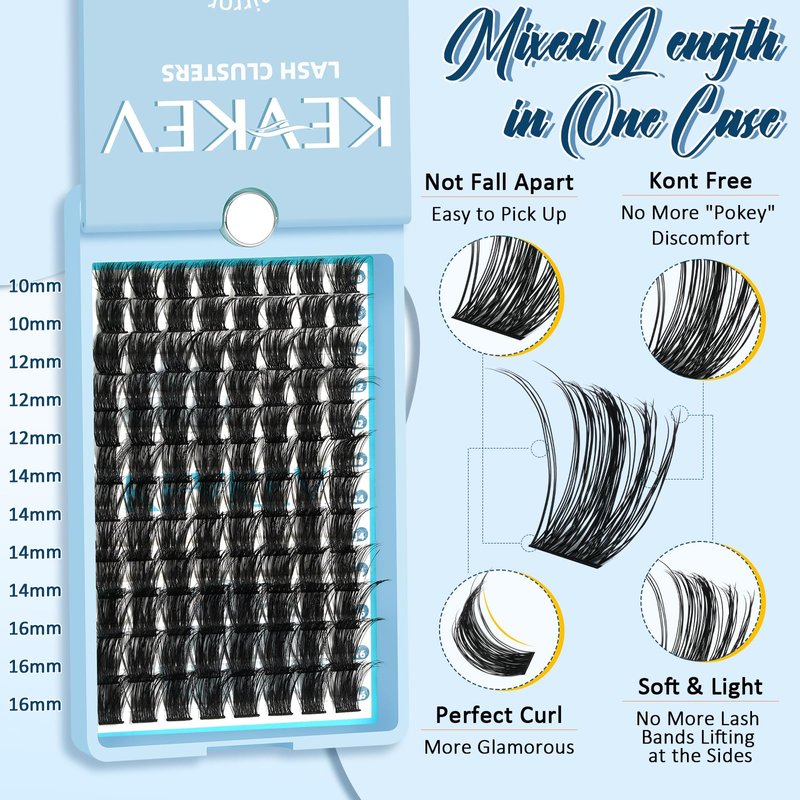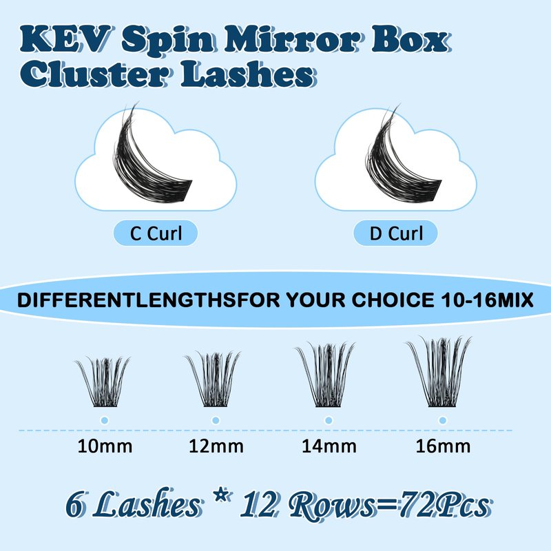 KevKev Lash Clusters 96 Pcs Cluster Lashes Special Spin Mirror Case DIY Lash Extension Soft & Comfortable Eyelash Clusters Thin Band Eyelashes with Mirror Easy to Apply (Morning,D-10-16mix)
