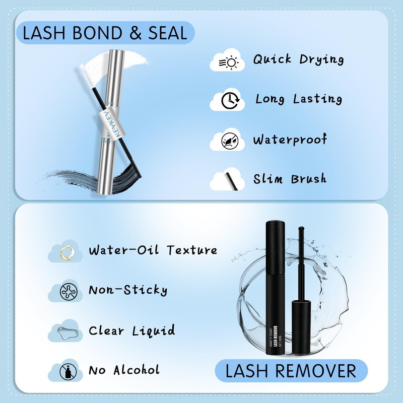 - 72H Lash Bond and Seal: KEV bond can strong hold the lash clusters till 72 Hours, our waterproof and sweat-resistant bond and seal lash glue keeps your lashes in place even in the toughest conditions.