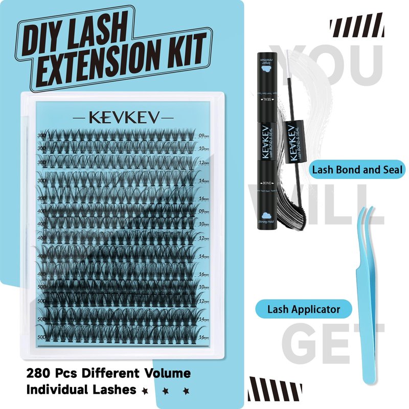 - DIY Lash Extension Kit: You will get 280pcs lash clusters, 1 double-ended lash bond and seal and 1 lash tweezer. With this lash clusters kit, you can easily get eyelash extensions at home and create your own eyelash style.
