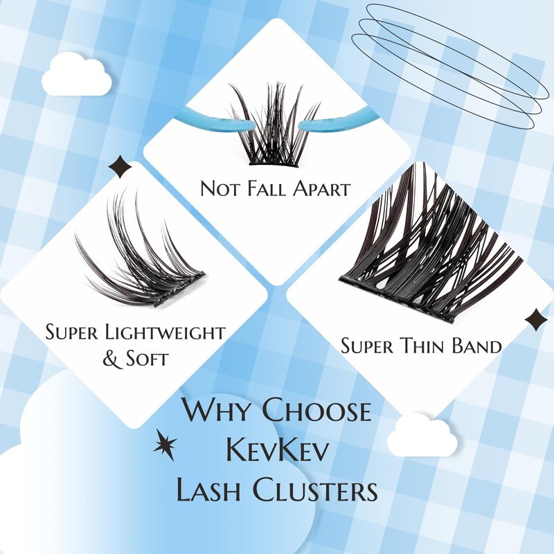 - How to Apply: STEP 1: GentIy the cluster lashes off the strip by the roots. STEP 2: Apply the lash glue the base of the cluster lashes. STEP 3: Place the cluster lashes under your natural lashes, 2-3mm away from your eyelid. STEP 4: Apply KEV Eyelash Sealer to protect your eye makeup for long-lasting beauty!