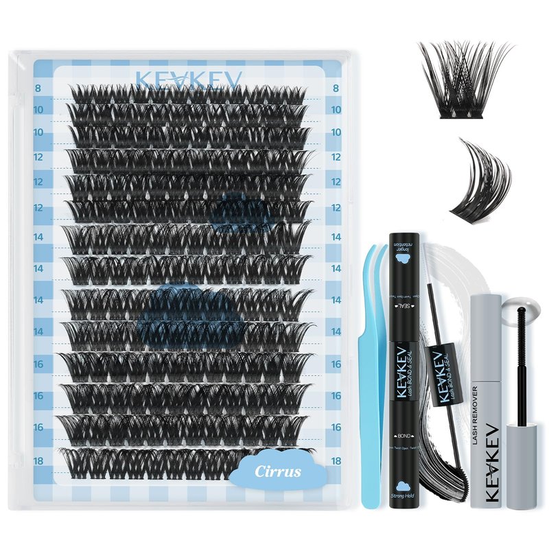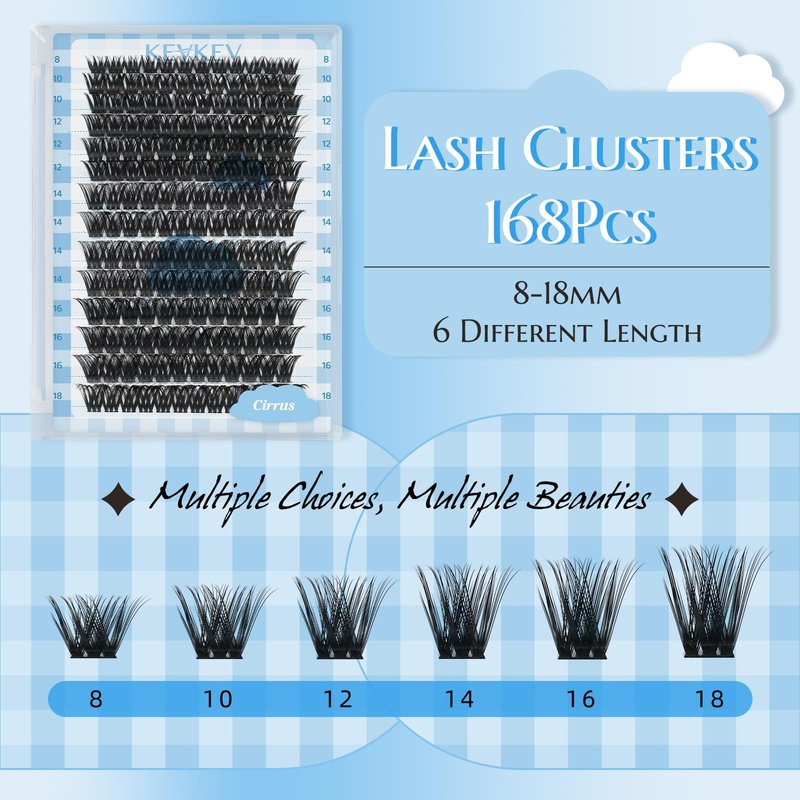 - Comfortable and Beauty Individual Lashes: KevKev DIY lash extensions kit include168PCS cluster lashes in 6 different lengths(8-18mm mix), the eyelash clusters providing a comfortable and lightweight wearing experience.