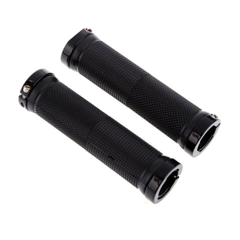 Kework Bike Grips, Double Locking Bike Bicycle Mountain Bike Handlebar Grips, Include 2 Handlebar Caps, Aluminum Alloy Lock Ring (Black)