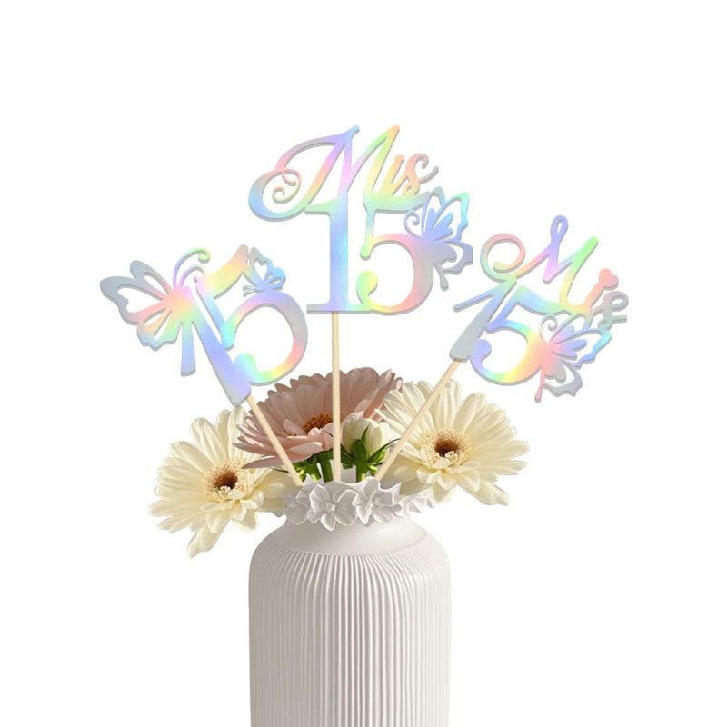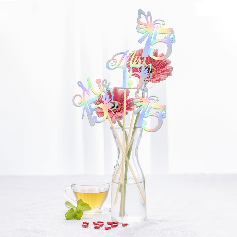 - Package Include: 12Pcs Mis 15 Centerpiece Sticks. Perfect for Birthday Party! Unique design makes your party full of atmosphere. They will make your food remarkable and attract.