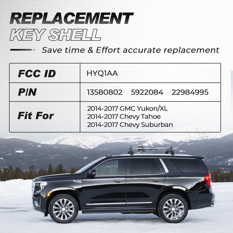 Fit for 2014 2015 2016 2017 Chevy Tahoe/Suburban, GMC Yukon key shell. The perfect replacement option for your old, broken Chevy Tahoe Suburban GMC Yukon keys. A thoughtful gift for husband, dad, friend, client. FCC ID: HYQ1AA.NO NEED TO PROGRAM.Get yourself one as a backup and it will look like you own a new car.