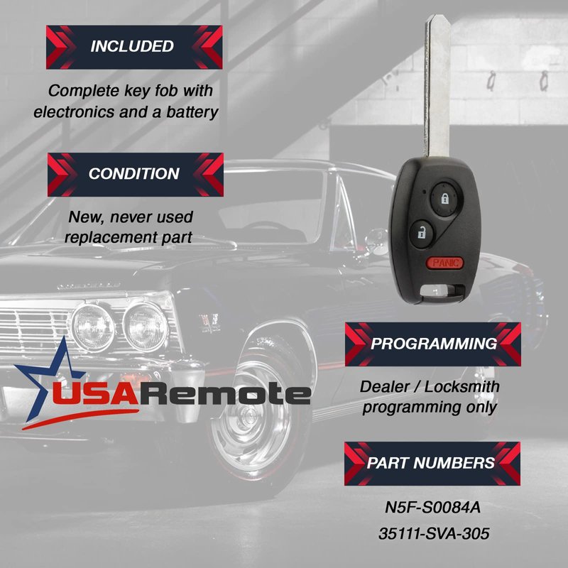 Key Fob Keyless Entry Remote fits 2006-2011 Honda Civic LX / 2011-2014 Odyssey (N5F-S0084A)