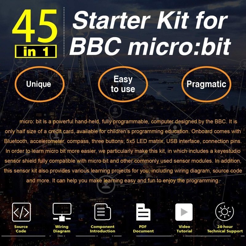 - 【About Starter Kit】 BBC Micro:bit Development Board is Not Included! This 45 sensors in 1 box kit works with microbit v1.5 and v2.2 versions. It has many parts that there is basically no limit to what you can build, easy to use. Recommend for STEM learning and teaching electronics programming.