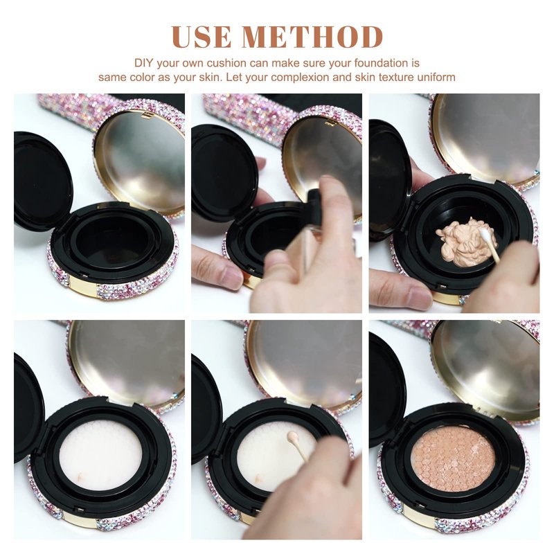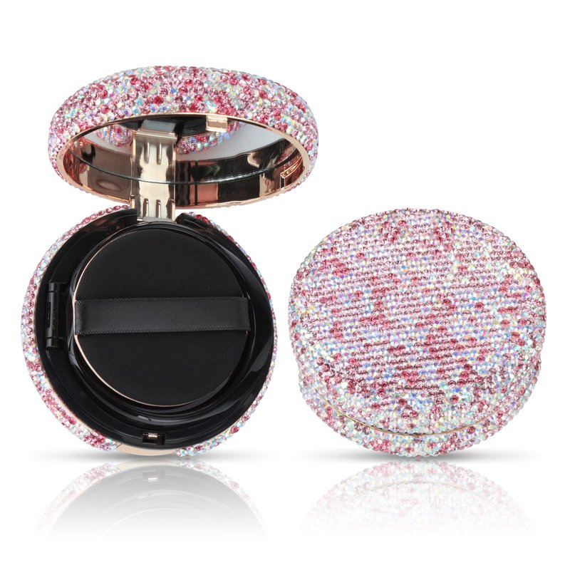 - Round shape makeup powder box decorated with bling rhinestones,make your powder box elegant and out of the ordinary.