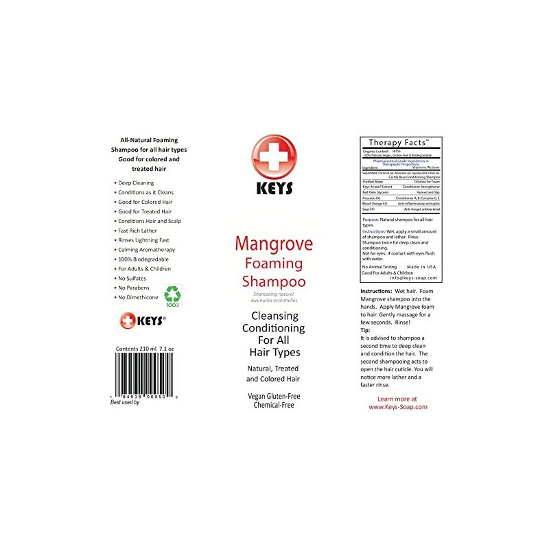 Keys Mangrove All Natural, Vegan, Chemical-Free Foaming Shampoo and Scalp Treatment, Cleansing Conditioning for All Hair Types, No Sulfates, No Dimethicone, 100% Biodegradable, 7.1 ounces