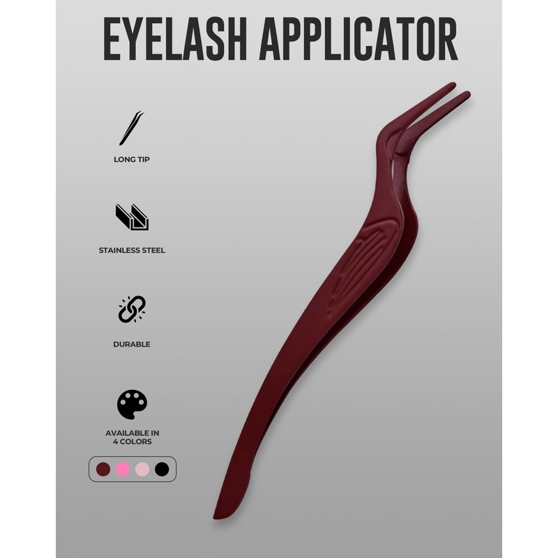 KHADMI IMPEX Eyelash Applicator Tool in Leather Case -Best Lash Cluster Applicator-with Stainless Steel Curved Design Lash Applicator Use for Wisps Lashes(Maroon)