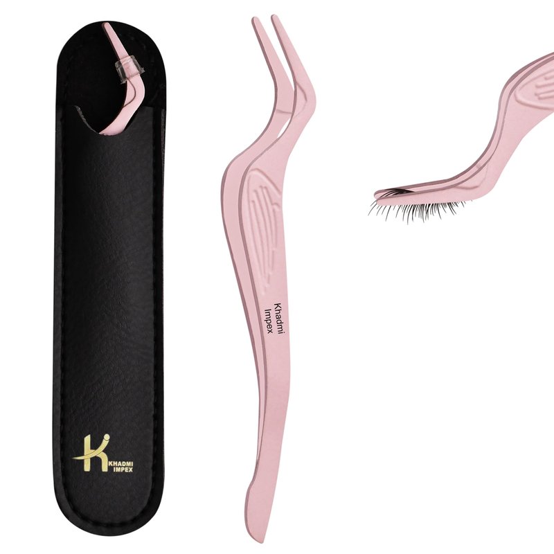 KHADMI IMPEX Eyelash Applicator Tool in Leather Case -Best Lash Cluster Applicator-with Stainless Steel Curved Design Lash Applicator Use for Wisps Lashes(Nude)