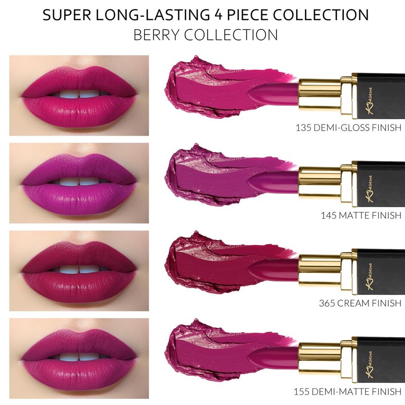 Khasana Lipstick Set. Long Lasting Gift Set. Moisturizing Formula, Infused with Vitamin E and Vitamin C. Multi Finish Lip Makeup Cream Gloss & Matte. Pack of 4. Berry Collection