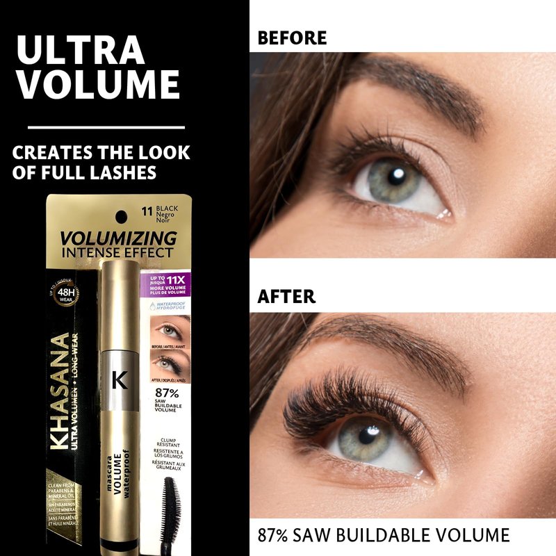 Khasana Ultra Voluminizing Intense Effect, Black Mascara for Extra-Volume, Waterproof & Long Lasting Formula, Clump Resistant Wand, 11X More Volume, Up to 48 Hrs Long Wear, Paraben Free. 1 Count