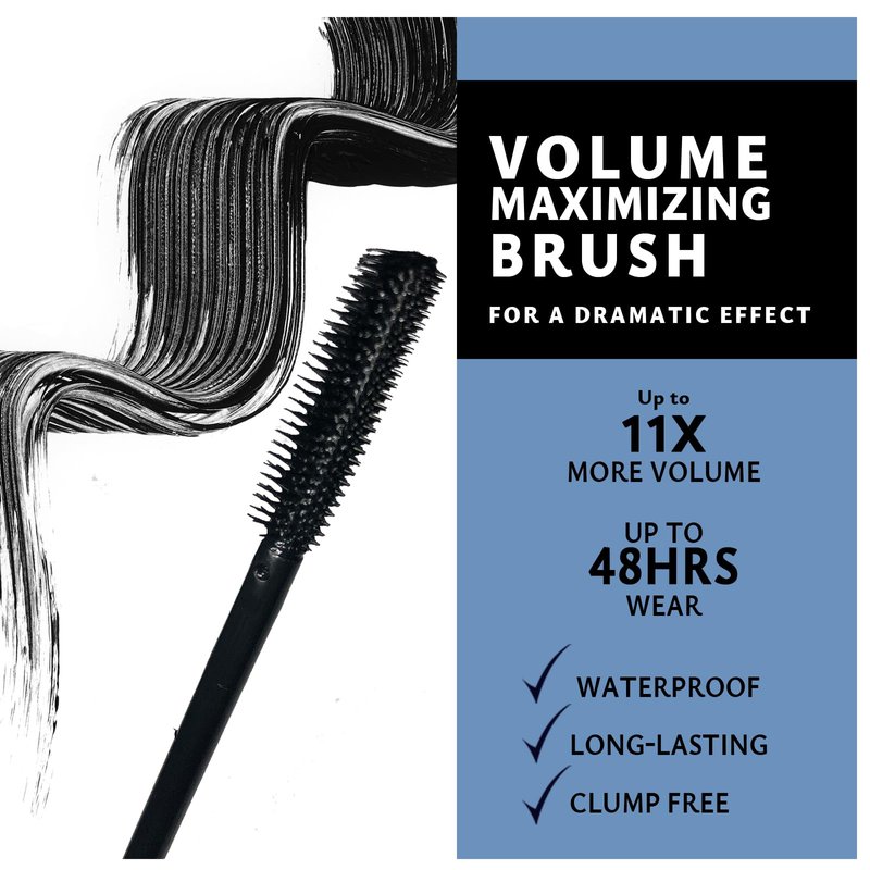 Khasana Ultra Volumizing & Lengthening Intense Effect, Black Mascara for Extra-Volume, Waterproof & Long-Lasting Formula, Clump Resistant Wand, 11X More Volume, Up to 48 Hrs Long Wear, Pack of 2.