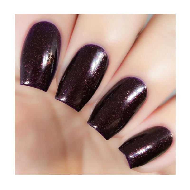 - Deep shade of eggplant plum with fine diamond dust for a subtle shimmer effect
