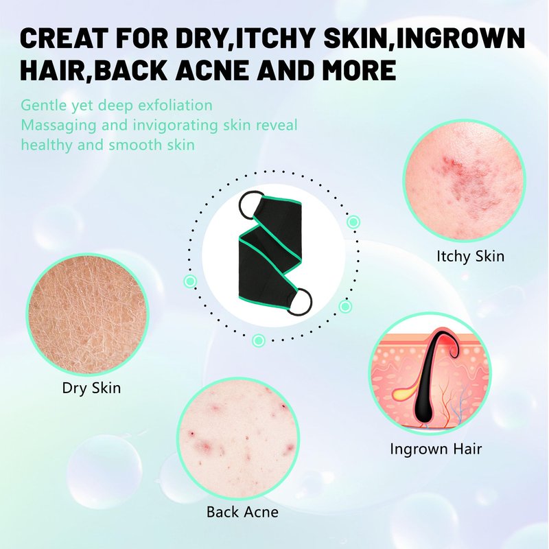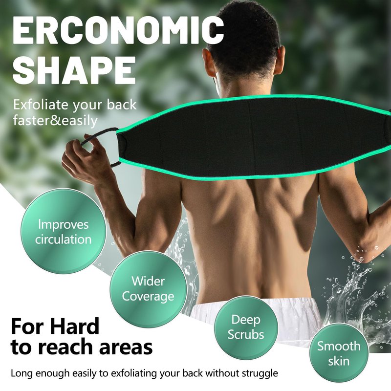 - 🔺Easy Exfoliation:Made of a unique, nylon and polyester fabric material, this back exfoliator removes layers of dead skin instantly, leaving behind smooth, radiant skin. Brings you a great exfoliating experience.This exfoliating back scrubber is designed to scrub your back and is more convenient than traditional back brushes, sponges and loofahs. It cleans hard-to-reach areas with ease, and with our back scrubber, you no longer need the help of others.