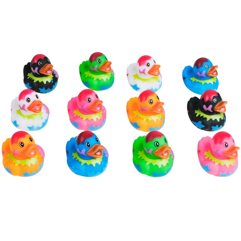 - PACKS INCLUDES – Twelve 2” cute rubber duckies, in assorted paint splat styles.