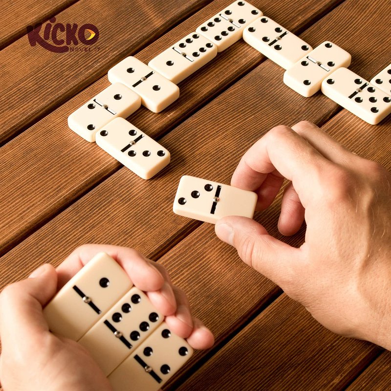 Kicko Domino Set - 28 Pieces Double Six Classic Dominoes in Durable Wooden Brown Box - Fun Mini Board Game for 2-4 Players - Ideal for Boys, Girls, Adults - Family Game Night and Vintage Party Games