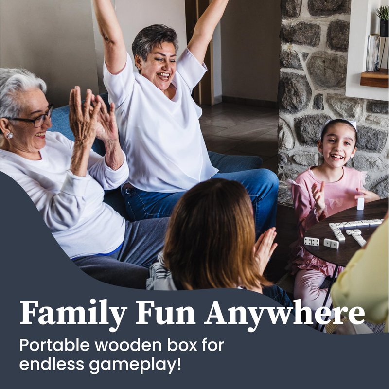 - Portable and Durable : Experience the joy of family game nights with this double-six domino set that includes 28 tiles enclosed in a rugged wooden box. Enjoy entertaining mini board games anywhere!
