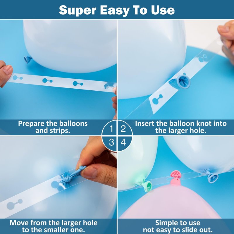 - Easy to Assemble: The innovative two-hole design simplifies balloon fixing. Simply Pull knots into the large hole, cinch in the small for a secure hold. Fill gaps with strong transparent dots for a seamless balloon display