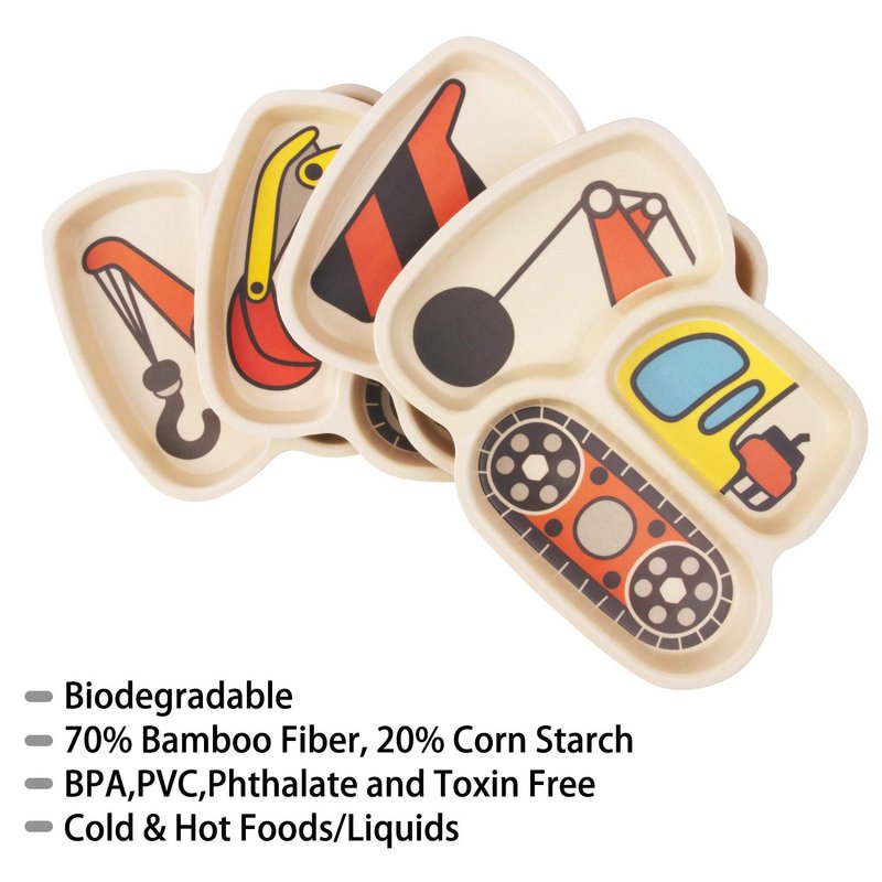 Kid Plate Set Bamboo Toddler Plates Dinnerware Dinner Dish Set Baby Feeding Spill Proof Divided Plate - Baby Spoon and fork 3-Piece Set for Kids and Toddlers Teaches Child Portion Control