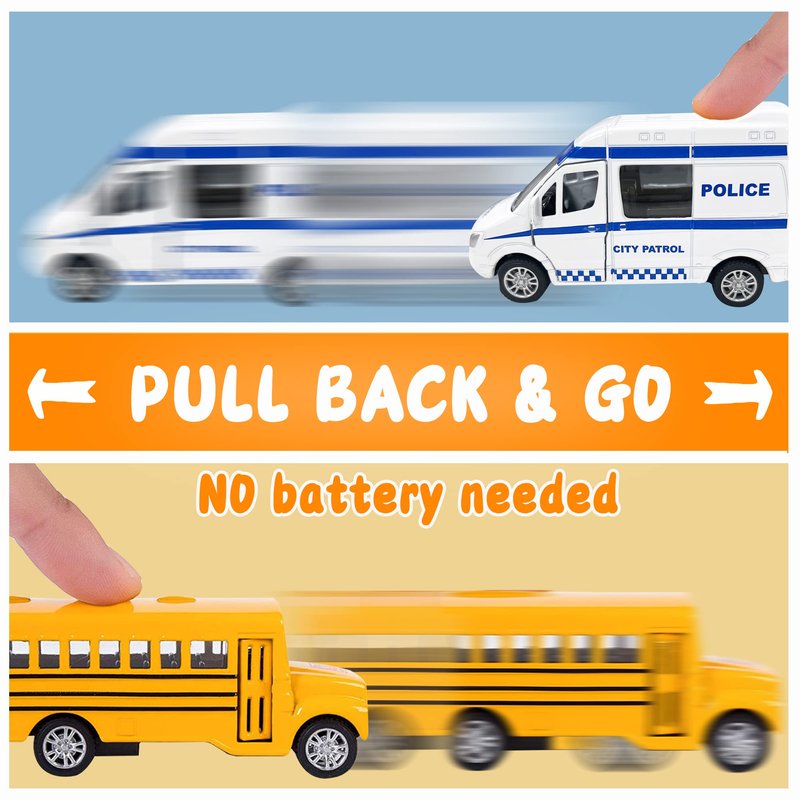 - VIBRANT COLORS: Multiple types and vibrant colors. This gift pack includes lovely van, school bus, police car and more