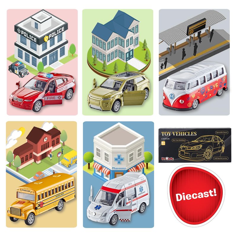 - VIBRANT COLORS: Multiple types and vibrant colors. This gift pack includes lovely van, ambulance, school bus, police car and more