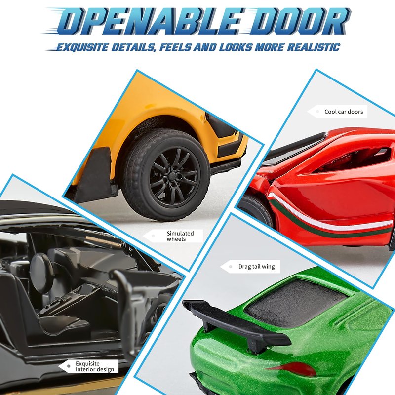- OPENABLE DOORS: Kids will have more fun exploring the interior details of the toy car by opening and closing the doors during the play! Highly detailed die cast sports cars with openable doors and realistic design provide kids a real-life and racing scenes for an imaginative play experience