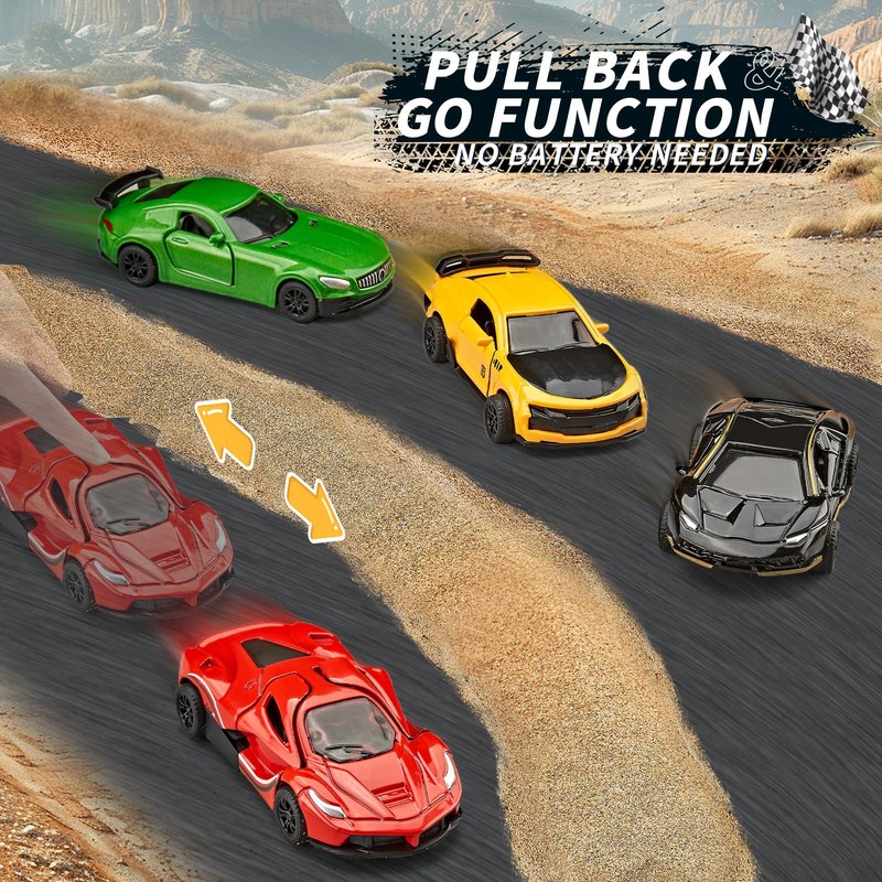 - BEST GIFT CHOICE: A simple and lively packing box makes a perfect gift for birthdays or any special occasion, especially for kids or adults who love racing and sports toy cars. Whether you are gifting to your kids, friends, or even students in the classroom, this die-cast toy car set is sure to bring a smile to their faces and endless hours of fun