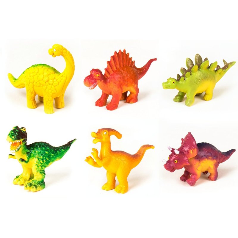 - Including six dinosaur figurines: Tyrannosaurus, Parasaurolophus, Brachiosaurus, Spinosaurus, Triceratops, Stegosaurus.