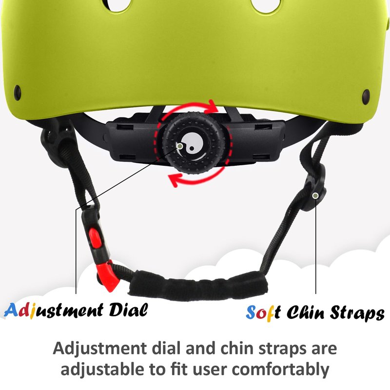 Crank adjustment dial in the back of helmet and chin straps are adjustable to fit user comfortably from 360 degree. The chin straps are soft, no more worries about that the straps may scratch child's sensitive skin. Straps buckle is easy to fasten and release.