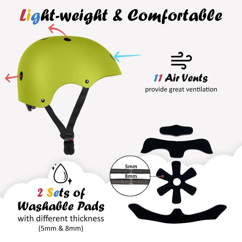 Kids Bike Helmet, Adjustable and Multi-Sport, from Toddler to Youth, 3 Sizes (Green)