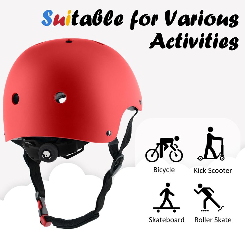 Kids Bike Helmet, Adjustable and Multi-Sport, from Toddler to Youth, 3 Sizes (Red)