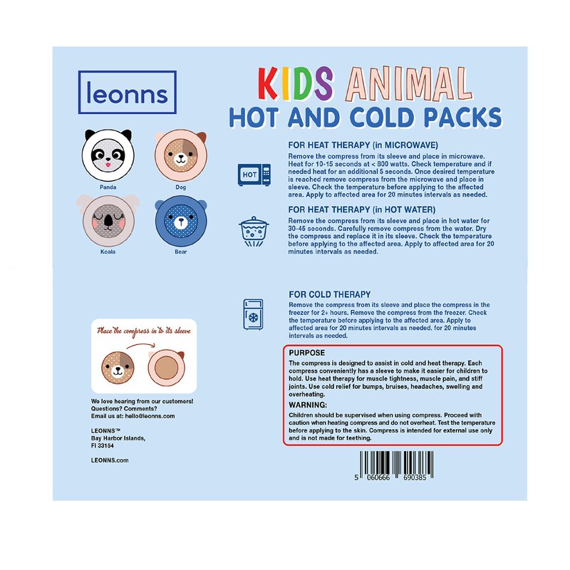 DESIGN- Our BooBoo Ice Packs are designed in a playful shape to help calm and soothe children that are experiencing pain or discomfort. The playful design helps young children relax so they can begin to feel the cool or heating therapy of their boo boo buddy. Before you know it your child’s face will be grinning from ear to ear. DUAL FUNCTIONALITY- Whether you need a cooling relief or heating relief your Boo Boo buddy is there to help. For Cooling Therapy: Place pack in the freezer for at least one hour. When frozen remove pack from freezer. Caution! Place pack in animal sleeve before use.For Heat Therapy: Place pack in Microwave for 5-10 seconds. Caution! Ensure that the pack is not too hot. Place pack in animal sleeve before use. Apply pack to affected area and enjoy the relief! RELIEF: Use heating relief for muscle tightness, muscle pain and stiff joints. Use cooling relief for bumps, bruises, headaches, and swelling. Not for use on open wounds or damaged skin. BPA FREE: Our hot and cold therapy packs are made with 100% BPA free materials. If Ice pack breaks discard immediately.