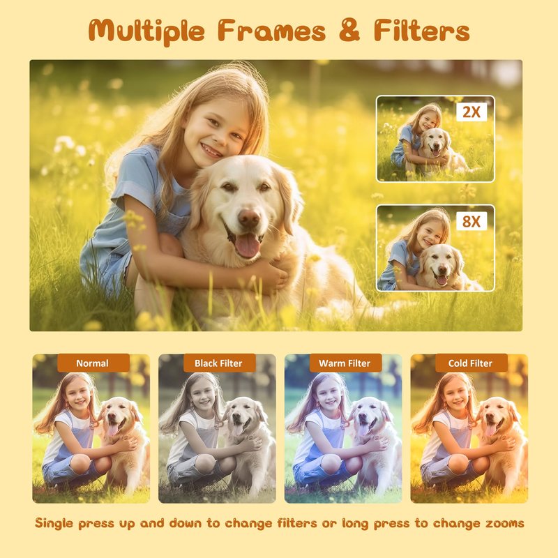 - Superior Storage: The included 32G memory card supports about 5,500 photos, which helps to record the fun of a child's growing up process. Best kids camera for boys and girls, they can decorate their photo frames while taking photos (28 frames and 6 filters)