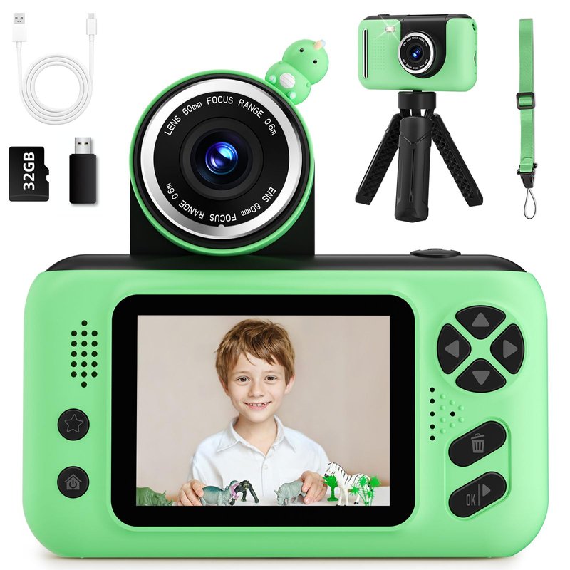 Kids Camera, Christmas Birthday Gifts for Boys and Girls Age 3-8,Video Cameras for Kids 8-12,Childrens Digital Camera for vlogging Portable Kids Selfie Camera with 32GB SD Card Green