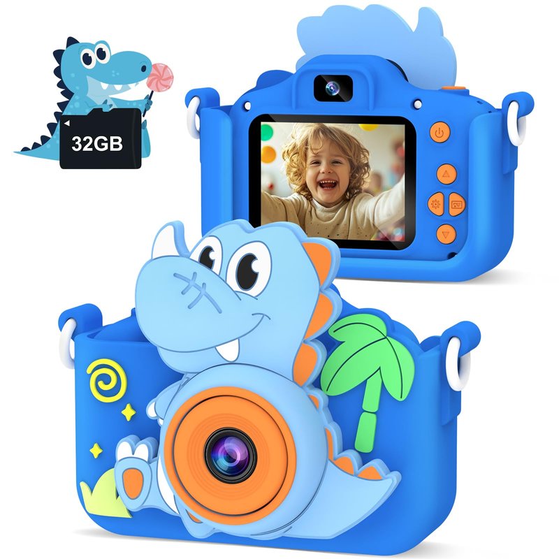 Kids Camera for Kids, Jexylon Toddler Digital Camera for 3-12 Years, Christmas Birthday Gift for Boys, Dinosaur Toys for 3 4 5 6 7 8 9 Years Old, Blue02