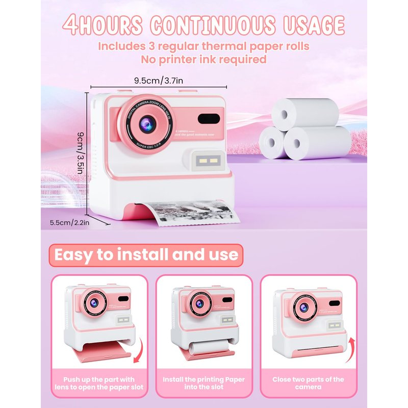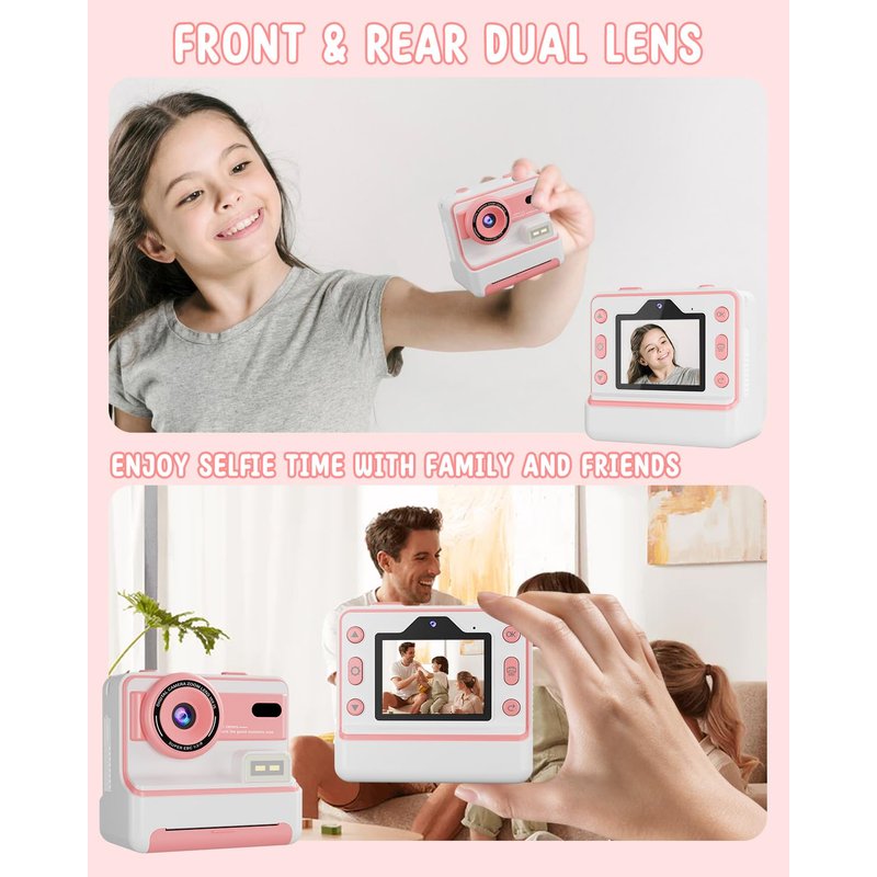 - 📸【Selfie Dual-Lens】The Kids Instant Print Camera is equipped with both front and rear lenses, providing endless possibilities for capturing stunning photos. Whether they're taking selfies, documenting their surroundings, or exploring different perspectives, this dual-lens setup ensures versatile and high-quality shots every time.