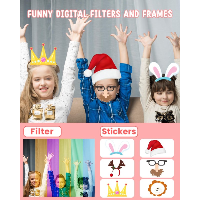 - 📚【Funny Filters and Frames】The kids camera offers exciting features that enhance creativity and fun. Kids can experiment with different shooting modes, apply artistic filters, and add frames to their photos, allowing them to explore their imagination and create unique masterpieces. The toy camera also includes a set of playful stickers, perfect for personalizing both the prints and the camera itself.