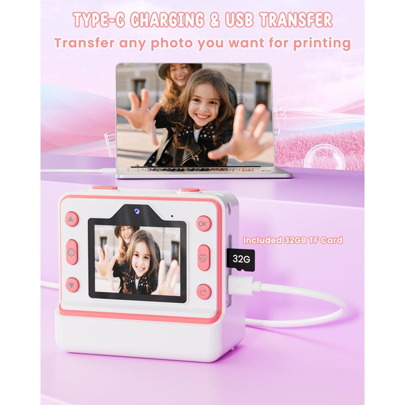 Kids Camera Instant Print for Girls Boys Age 3-12 Kids Toys, 1080P Kids Digital Cameras Christmas Birthday Gifts for 4 5 6 7 8 9 10 Year Old Girls, Toddler Camera Girls Toys with 32GB Card