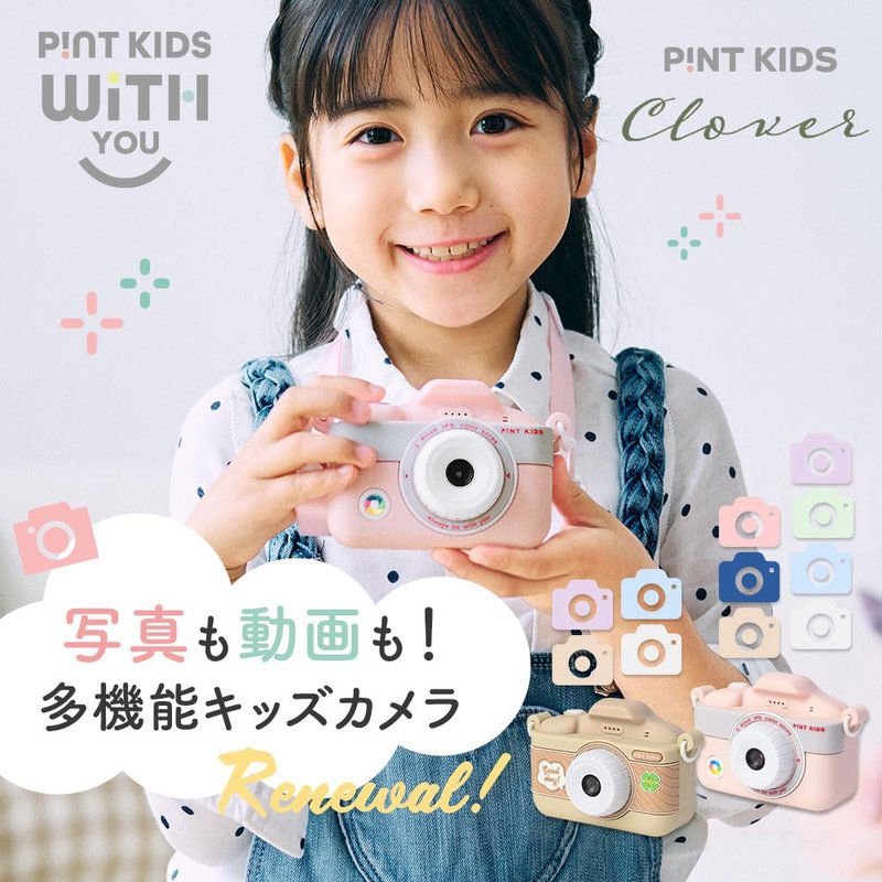 [Original design only for P!NT KIDS] Two types of new camera cover designs are now available! "WITHyou", which inherited the design from Pinto Kids WITH'', which was released in 2022 and was a big hit, and "Clover", which is newly released and features the four leaves of happiness. A design that is unisex and cute, and both girls and boys will love it. You can choose from a variety of stylish colors, even for adults, so you're sure to find your favorite. To take a picture, all you need to do is point the camera and press the shutter button. The surrounding environment is automatically adjusted to match the brightness and focus. The button allows you to zoom, which makes you feel like a photographer! The absence of flash function makes it safe for children. *WITHyou and Clover covers are exclusive to this new camera. The previous Focus Kids cameras cannot be used with it.