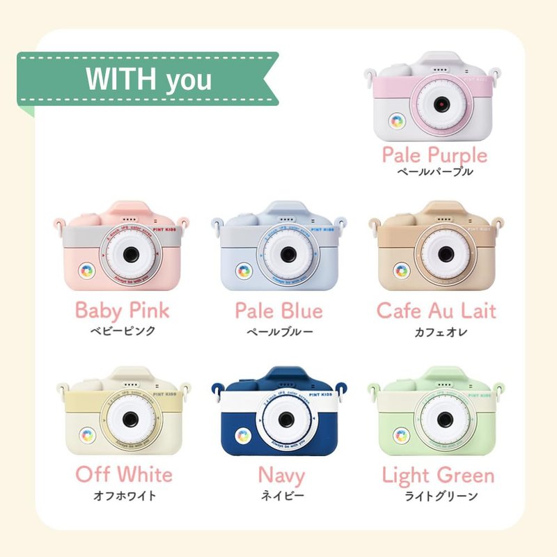 [Original design only for P!NT KIDS] Two types of new camera cover designs are now available! "WITHyou", which inherited the design from Pinto Kids WITH'', which was released in 2022 and was a big hit, and "Clover", which is newly released and features the four leaves of happiness. A design that is unisex and cute, and both girls and boys will love it. You can choose from a variety of stylish colors, even for adults, so you're sure to find your favorite. To take a picture, all you need to do is point the camera and press the shutter button. The surrounding environment is automatically adjusted to match the brightness and focus. The button allows you to zoom, which makes you feel like a photographer! The absence of flash function makes it safe for children. *WITHyou and Clover covers are exclusive to this new camera. The previous Focus Kids cameras cannot be used with it.
